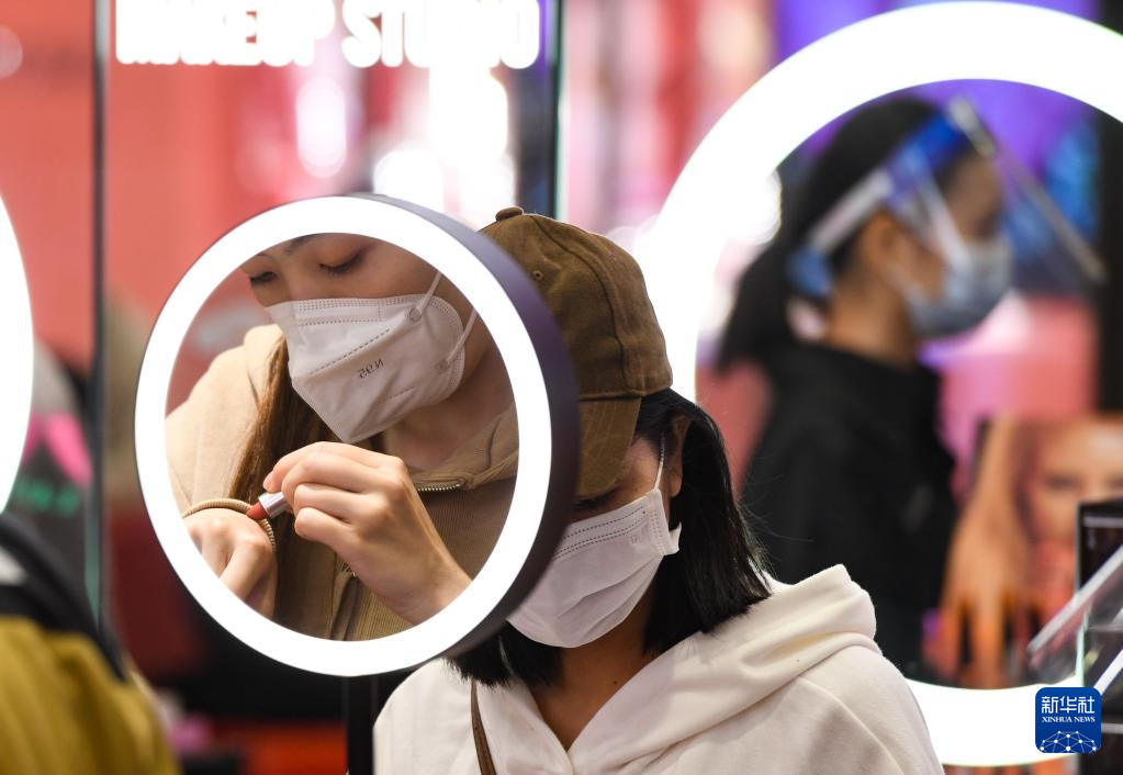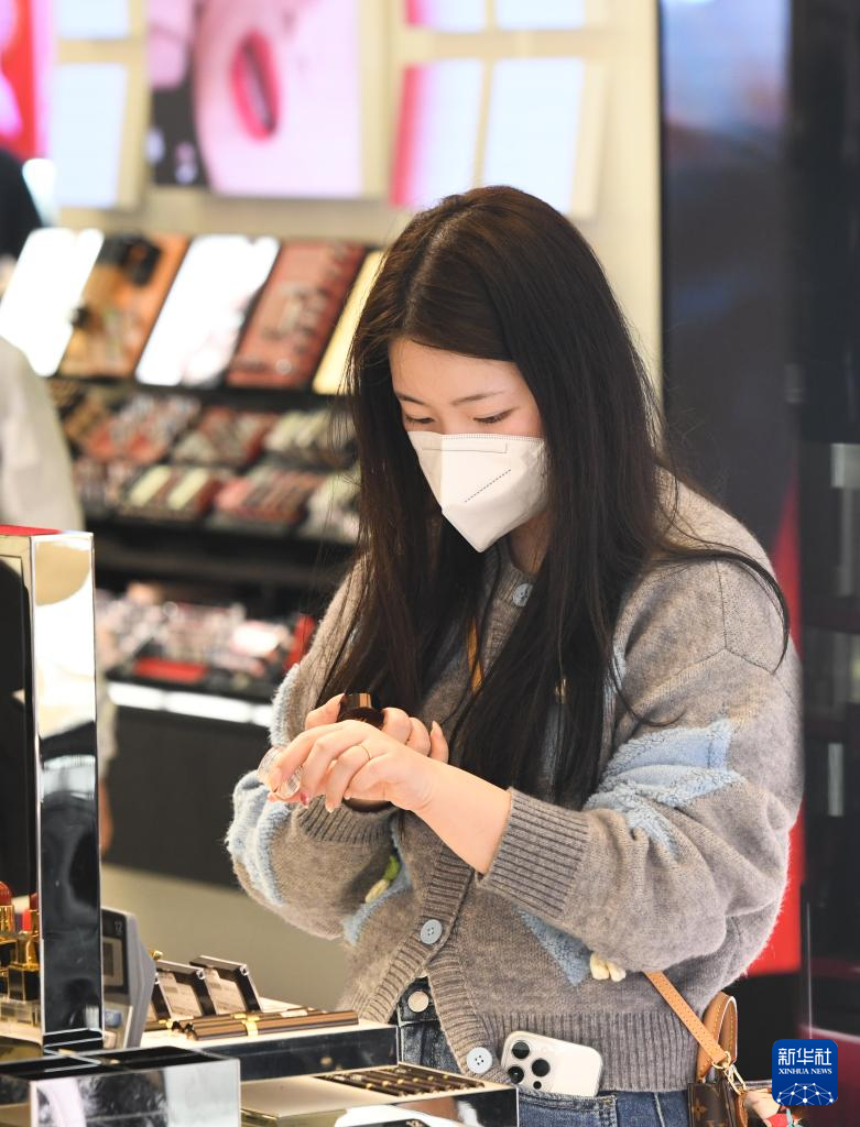 ??1月8日,游客在中免集團(tuán)??谌赵聫V場免稅店選購免稅商品。