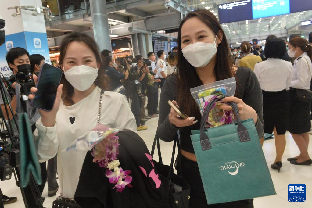 ??當(dāng)日,泰國素萬那普機(jī)場舉行儀式歡迎中國出入境政策調(diào)整后首個(gè)中國赴泰國航班旅客,泰國副總理兼衛(wèi)生部長阿努廷到現(xiàn)場迎接。該航班來自廈門,共搭載269名旅客。