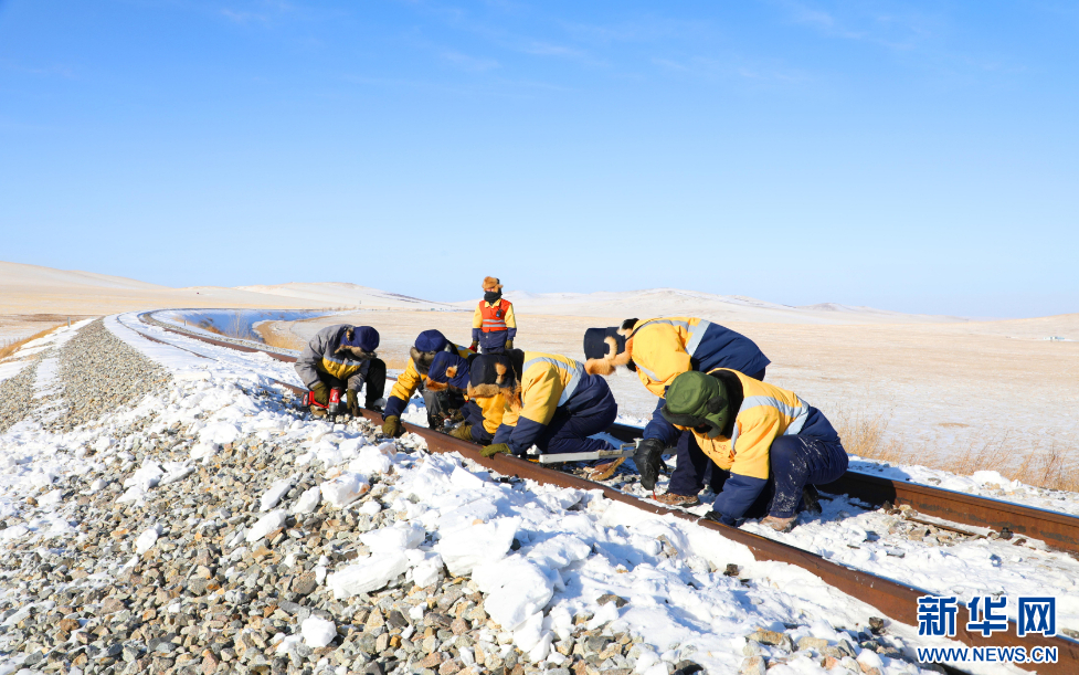 ??13時20分,封鎖命令下達(dá),沙爾塔拉線路車間的作業(yè)人員迅速向作業(yè)地點集結(jié)。刮起的“白毛風(fēng)”,給正常的凍害整治作業(yè)帶來很大的“不方便”。線路上積雪已經(jīng)變成雪殼把鋼軌上的螺栓扣子了下面,青工胡化成拿起鍬,開始清理鋼軌上的積雪,逐漸鋼軌下的螺栓露了出來,大家也都開始忙碌了起來,在這樣惡劣的自然環(huán)境下,草原鐵路的“鋼軌醫(yī)生”抵抗風(fēng)雪的襲擊,堅守在廣闊無垠的草原鐵道線上,和風(fēng)雪搏擊,認(rèn)真地在鐵道線上松螺栓、發(fā)墊板、起壓機(jī)、看水平……展開線路凍害維修作業(yè),保障鐵路運輸安全。