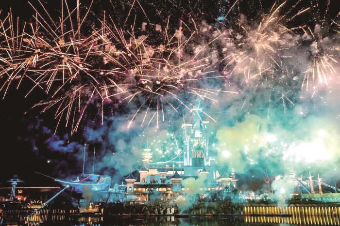 襄陽華僑城奇幻度假區(qū)奇幻谷煙火表演。