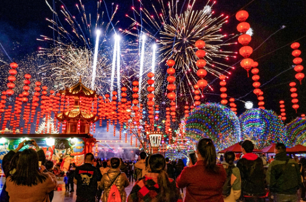??春節(jié)期間,各地方特將以花燈組合、煙火大秀、無人機燈光秀為游客帶來新年視覺盛宴。