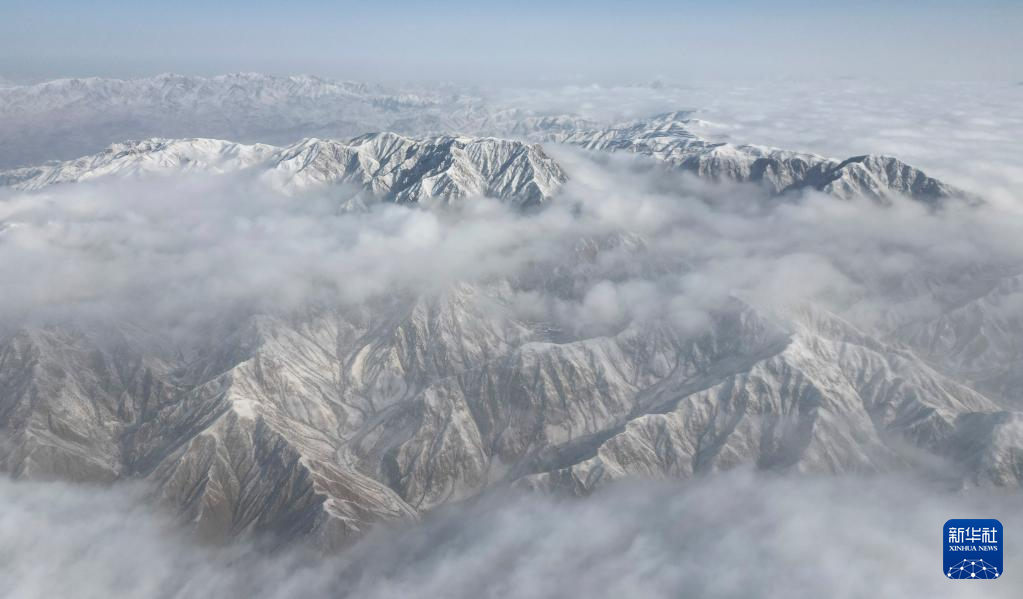 ??2月14日拍攝的甘肅省東鄉(xiāng)縣山區(qū)雪景(無(wú)人機(jī)照片)。