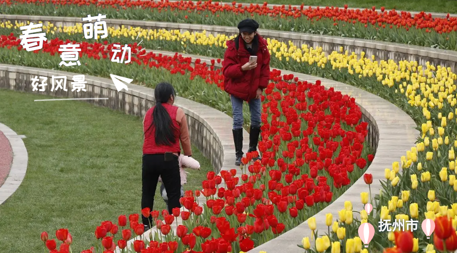 ??2月23日,陽光明媚,撫州市三翁花園郁金香盛開,吸引了不少市民前來賞花踏青,打卡留影。(李辛田 攝)