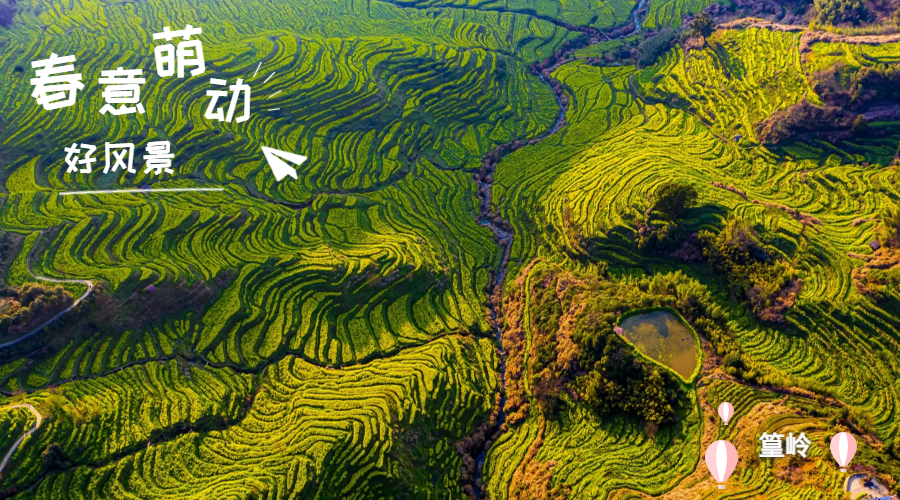 ??早春二月,春意正濃。江西篁嶺萬畝梯田油菜花隨山就勢,重疊有序,蔚為壯觀,從空中俯瞰猶如“大地的指紋”。(青見 攝)