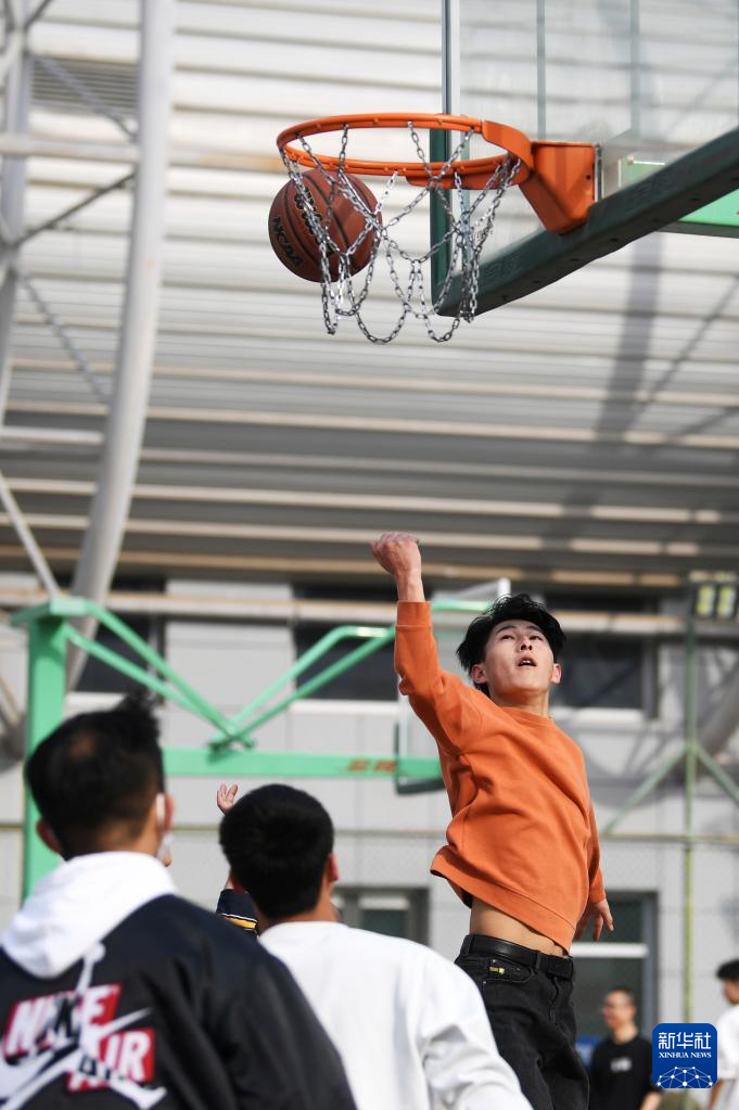 ??3月2日,幾位籃球愛好者在甘肅省蘭州市體育公園的室外籃球場(chǎng)打球。