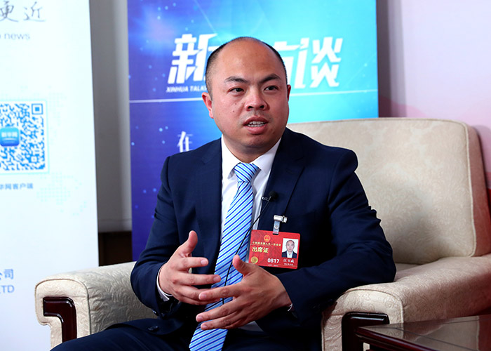 全國人大代表、浙江省湖州市安吉縣余村村黨支部書記汪玉成接受新華網(wǎng)采訪。