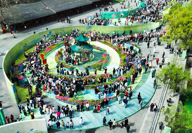 ??開(kāi)幕式現(xiàn)場(chǎng),眾人擊缶、國(guó)風(fēng)群舞、漢服大巡游等節(jié)目依次精彩上演。此次云臺(tái)山漢服花朝節(jié)活動(dòng)將持續(xù)至4月初,每周不同文化主題,精心策劃漢服婚禮、禮樂(lè)展演、國(guó)風(fēng)民樂(lè)等數(shù)百場(chǎng)特色漢服體驗(yàn)活動(dòng)。