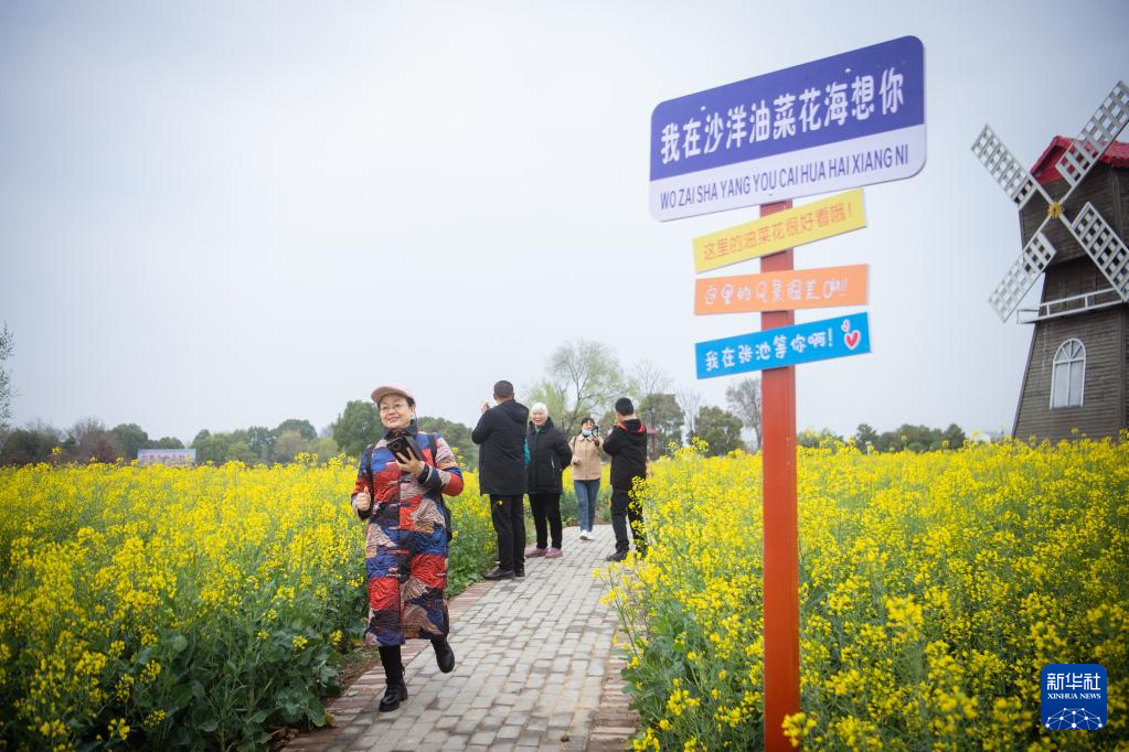 ??湖北省沙洋縣常年種植油菜面積70余萬畝,當(dāng)?shù)赜筒嘶êI钍苡慰拖矏邸?023年3月以來,在沙洋縣油菜花節(jié)核心景區(qū)曾集鎮(zhèn)張池村等地,游客成群結(jié)隊,在金黃色的田野中徜徉,感受美好春光。