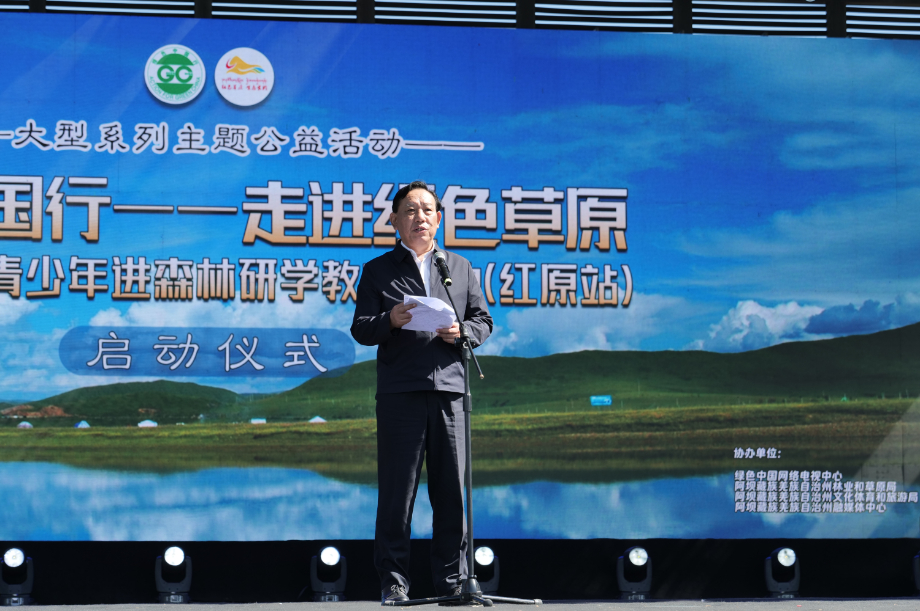 ??啟動儀式上,國家林業(yè)和草原局原副局長、全國關(guān)注森林活動執(zhí)行委員會副主任劉東生,四川省林業(yè)和草原局黨組成員、副局長王景弘,中共阿壩藏族羌族自治州委副書記、州政府黨組書記、州長羅振華,中共紅原縣委書記楊文松等出席啟動儀式并致辭。綠色中國形象大使劉勁攜青少年代表共同宣讀《全國三億青少年走進紅色草原倡議書》。