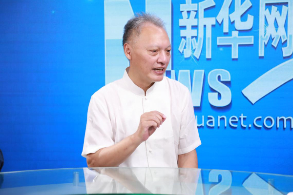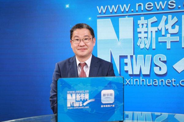 中山大學中山眼科中心二級教授、香港理工大學講席教授何明光(左)、蘇州艾爾興醫(yī)療技術有限公司董事長曹蘇生(中)做客新華網(wǎng)