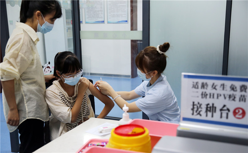 據(jù)了解,具有本區(qū)學(xué)籍或戶(hù)籍,未接種過(guò)疫苗且不超過(guò)14周歲的初中女生,按照知情、自愿原則,可前往學(xué)校所在縣區(qū)定點(diǎn)機(jī)構(gòu)免費(fèi)接種,首劑接種時(shí)年齡應(yīng)未滿(mǎn)14周歲。此次接種的疫苗為國(guó)產(chǎn)二價(jià)HPV疫苗。二價(jià)HPV疫苗可預(yù)防高危型HPV-16、HPV-18病毒引起的感染,有效阻斷宮頸癌的發(fā)生。9-14歲僅需接種2劑,是HPV疫苗接種的最佳年齡。記者 戴越 攝
