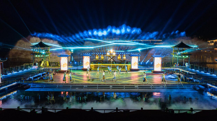 ??據(jù)悉,七鯉古鎮(zhèn)度假區(qū)是在原古建基礎(chǔ)上,融合當(dāng)?shù)匚幕癁轶w驗(yàn)場景,結(jié)合街區(qū)多種復(fù)合業(yè)態(tài),打造了全景區(qū)沉浸式萬人劇本游,推出了夜宴、夜秀、夜游、夜娛四大主題產(chǎn)品,實(shí)現(xiàn)了吃、住、行、游、購、娛等全方面融合發(fā)展,致力于打造面向贛粵閩湘的文化型古鎮(zhèn)目的地。