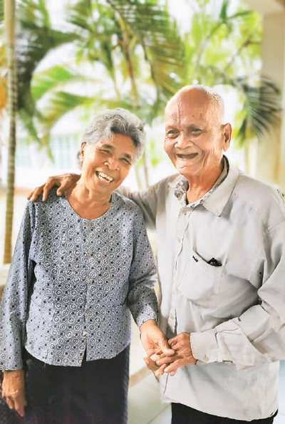 | 這是柬埔寨一對80多歲的老兩口,相濡以沫生活了近60年。老爺爺自12年前因為白內(nèi)障雙眼逐漸失明再也看不到老伴了。中國醫(yī)療隊為老爺爺實施白內(nèi)障手術(shù)后,他非常激動。當(dāng)醫(yī)療隊員問他老伴有沒有變化時,老爺爺幽默地說:“我的太太老了,但還是很漂亮?!崩蠣敔斚沧套痰貭恐夏棠痰氖只丶伊?,這是12年來他第一次給老伴引路。 |