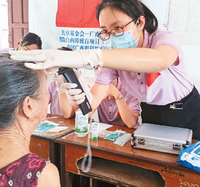 消除白內(nèi)障致盲項目是廣西推動實施“一帶一路”醫(yī)療服務(wù)走出去的合作項目,也是第一次由自治區(qū)本級財政支持,整合全區(qū)優(yōu)質(zhì)眼科資源、整建制短期持續(xù)輪流派出專家隊伍、以一定時期內(nèi)消除特定行政區(qū)域內(nèi)白內(nèi)障致盲現(xiàn)象為目標(biāo)的醫(yī)療援助行動。