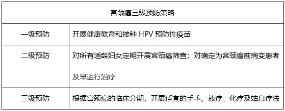 ?如何預(yù)防宮頸癌? ??2017年中國子宮頸癌綜合防控指南提出了三級(jí)預(yù)防策略,其中接種HPV疫苗是第一步。