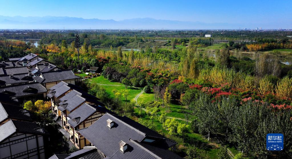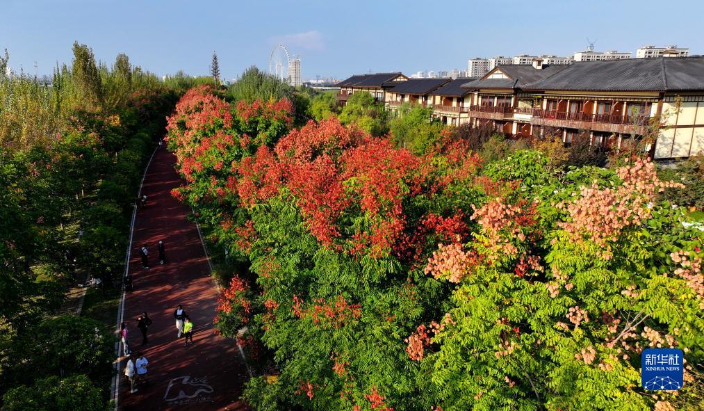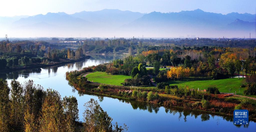 金秋時節(jié),陜西西咸新區(qū)灃河兩岸秋意漸濃。暖陽下,斑斕的樹木,碧藍的晴空,巍峨的秦嶺,共同繪就出一幅絢爛秋景。
