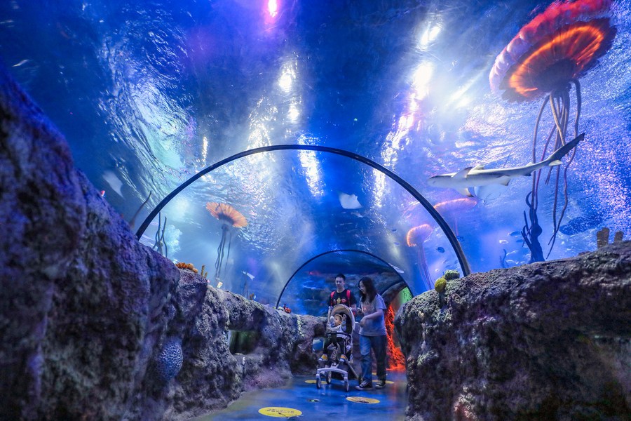 10月5日,游客在遼寧省沈陽海洋探索中心游覽。新華社記者 龍雷 攝