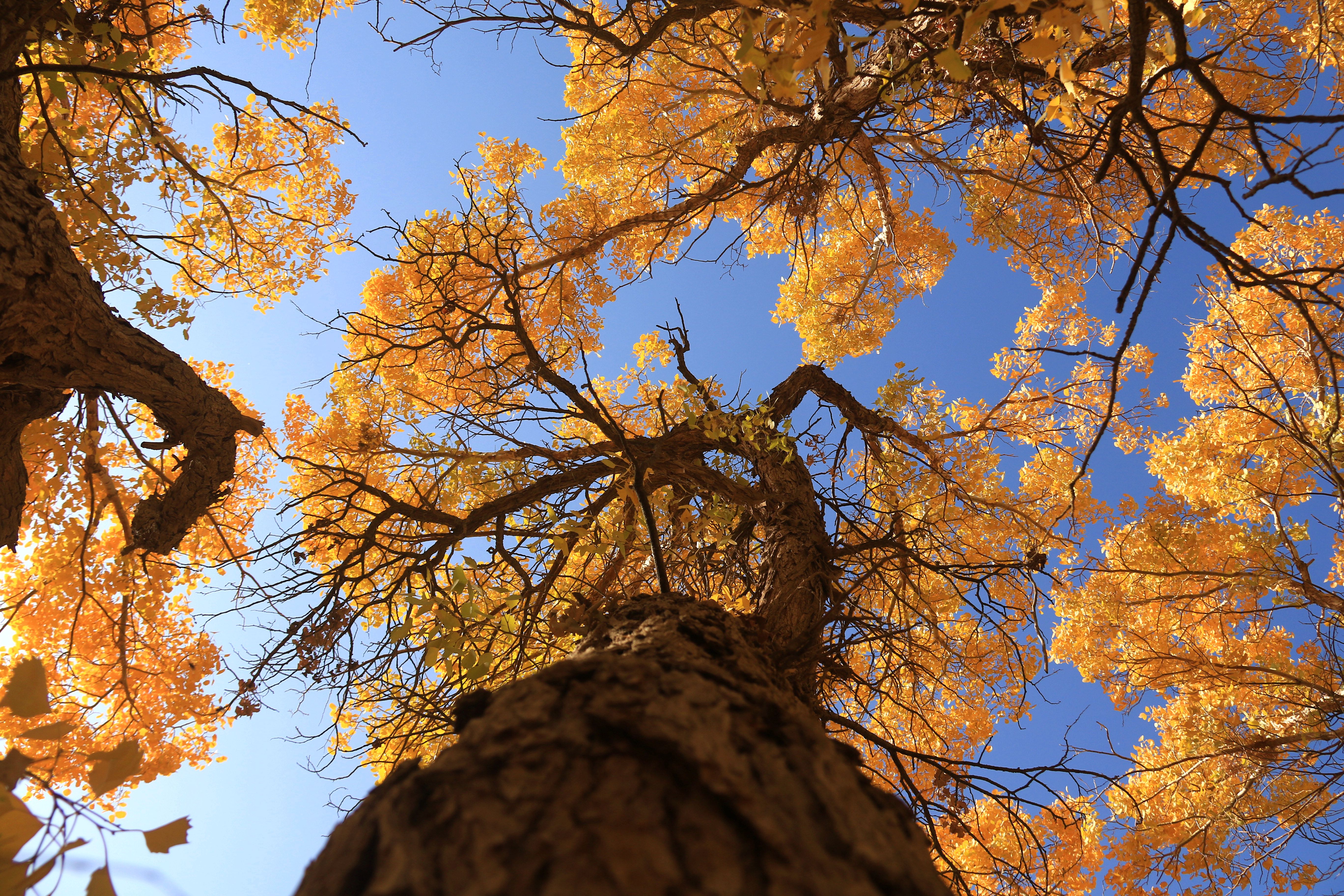 金秋十月,位于三危山下的甘肅省敦煌市莫高鎮(zhèn)的胡楊林被秋色潤(rùn)染,迎來(lái)一年中的最佳觀賞期。金色胡楊在陽(yáng)光的照射下,美不勝收。