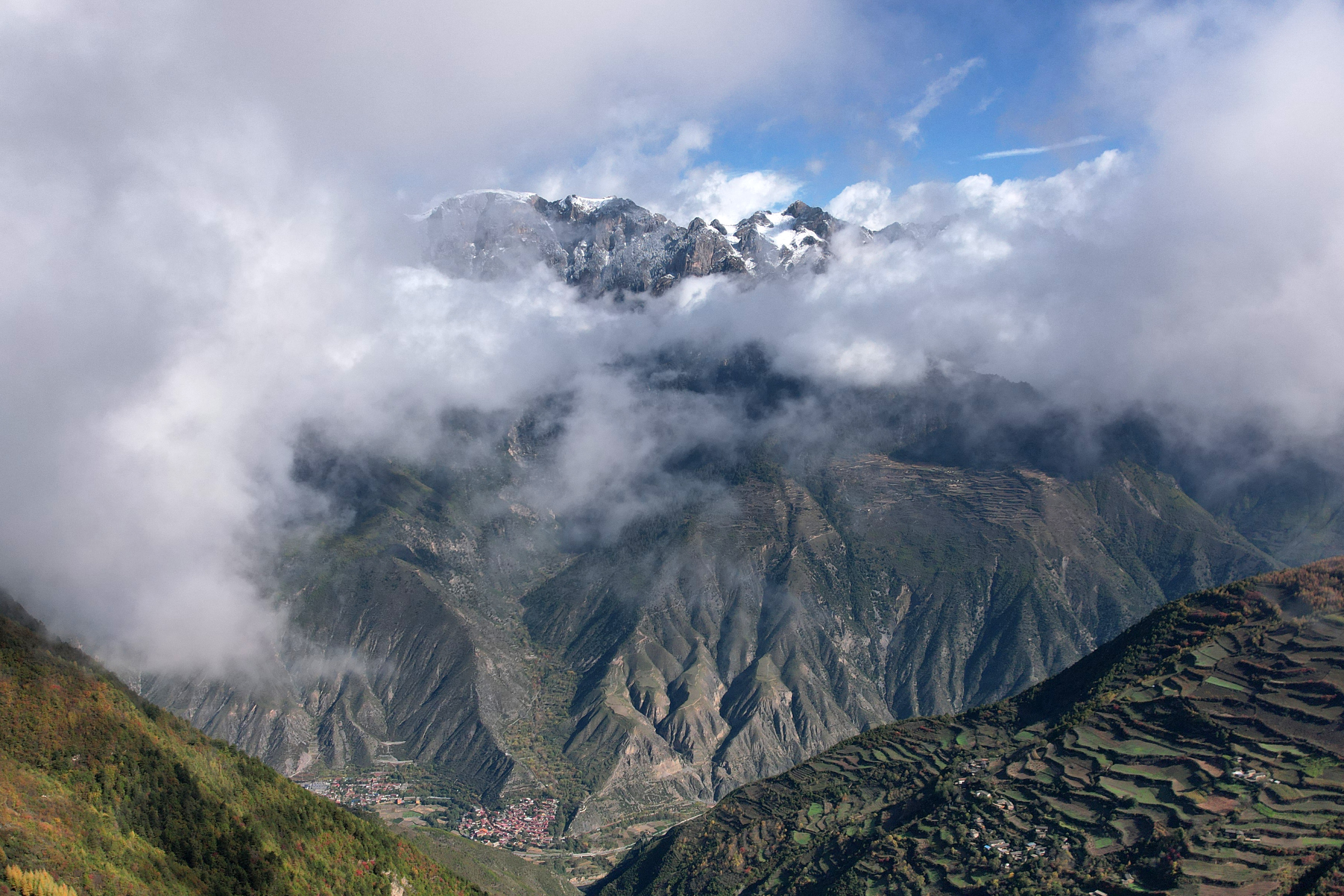 金秋時節(jié),位于甘肅省甘南藏族自治州舟曲縣境內(nèi)的拉尕山秋意漸濃,一場秋雪降臨后,拉尕山云纏霧繞,斑斕如畫。