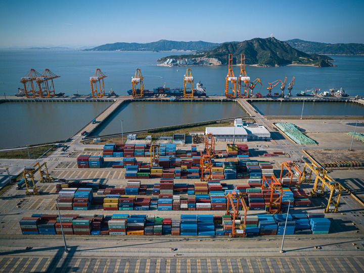 這是11月22日拍攝的溫州港狀元岙集裝箱碼頭(無人機照片)。新華社記者 江漢 攝