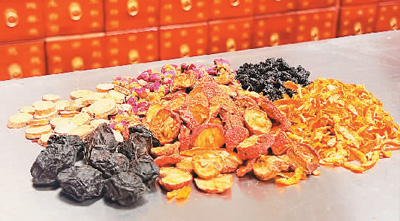 | 北京中醫(yī)醫(yī)院藥學部藥師根據(jù)酸梅湯配方抓取的中藥茶飲。 |