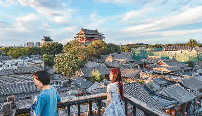 | 6月10日,人們在北京什剎海附近咖啡廳露臺欣賞風景。 |