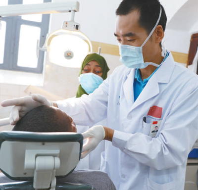 | 在納茲莫加醫(yī)院,口腔科醫(yī)生盛磊給患者看病。 |