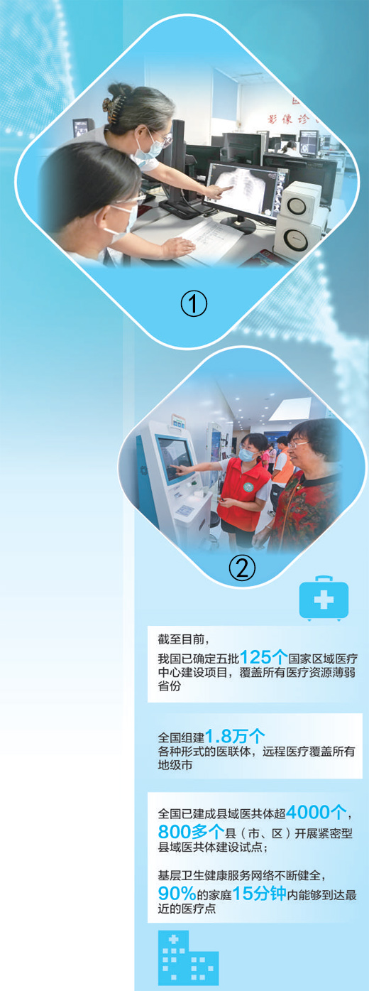推動優(yōu)質(zhì)醫(yī)療資源下沉是促進優(yōu)質(zhì)醫(yī)療資源擴容和區(qū)域均衡布局的重要一步。近年來,我國大力建設(shè)國家區(qū)域醫(yī)療中心,組建各種形式的醫(yī)聯(lián)體,推動優(yōu)質(zhì)醫(yī)療資源下沉,增強欠發(fā)達地區(qū)、基層和農(nóng)村的醫(yī)療服務(wù)能力,讓群眾在家門口就能享受到優(yōu)質(zhì)、高效的醫(yī)療服務(wù)。