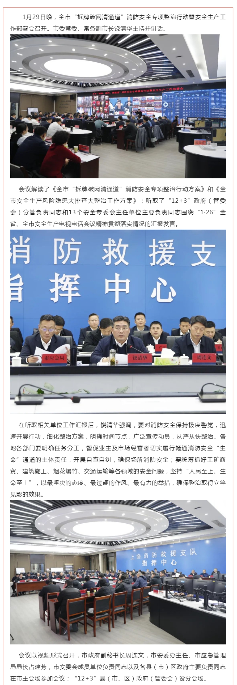 上饒市“拆牌破網(wǎng)清通道”消防安全專項(xiàng)整治行動(dòng)暨安全生產(chǎn)工作部署會(huì)召開(kāi) 饒清華講話