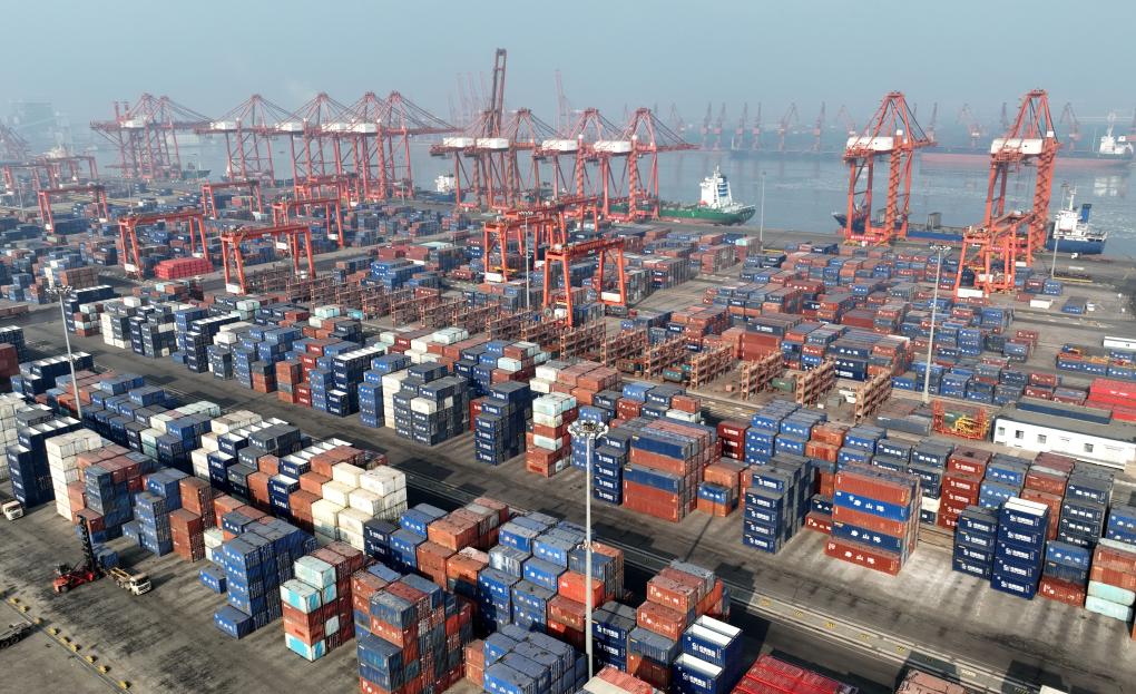 這是2024年2月7日拍攝的唐山港京唐港區(qū)集裝箱碼頭(無人機照片)。新華社記者楊世堯攝