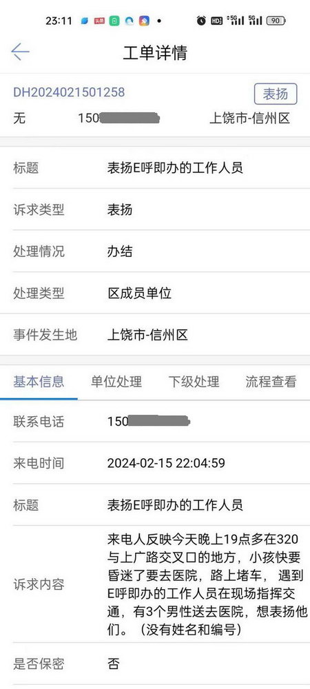 2月15日(大年初六)晚上10點(diǎn)左右,朝陽(yáng)鎮(zhèn)“E呼即辦”平臺(tái)突然接到一通特殊來(lái)電,來(lái)電人點(diǎn)名表?yè)P(yáng)“E呼即辦”3名值守干部。