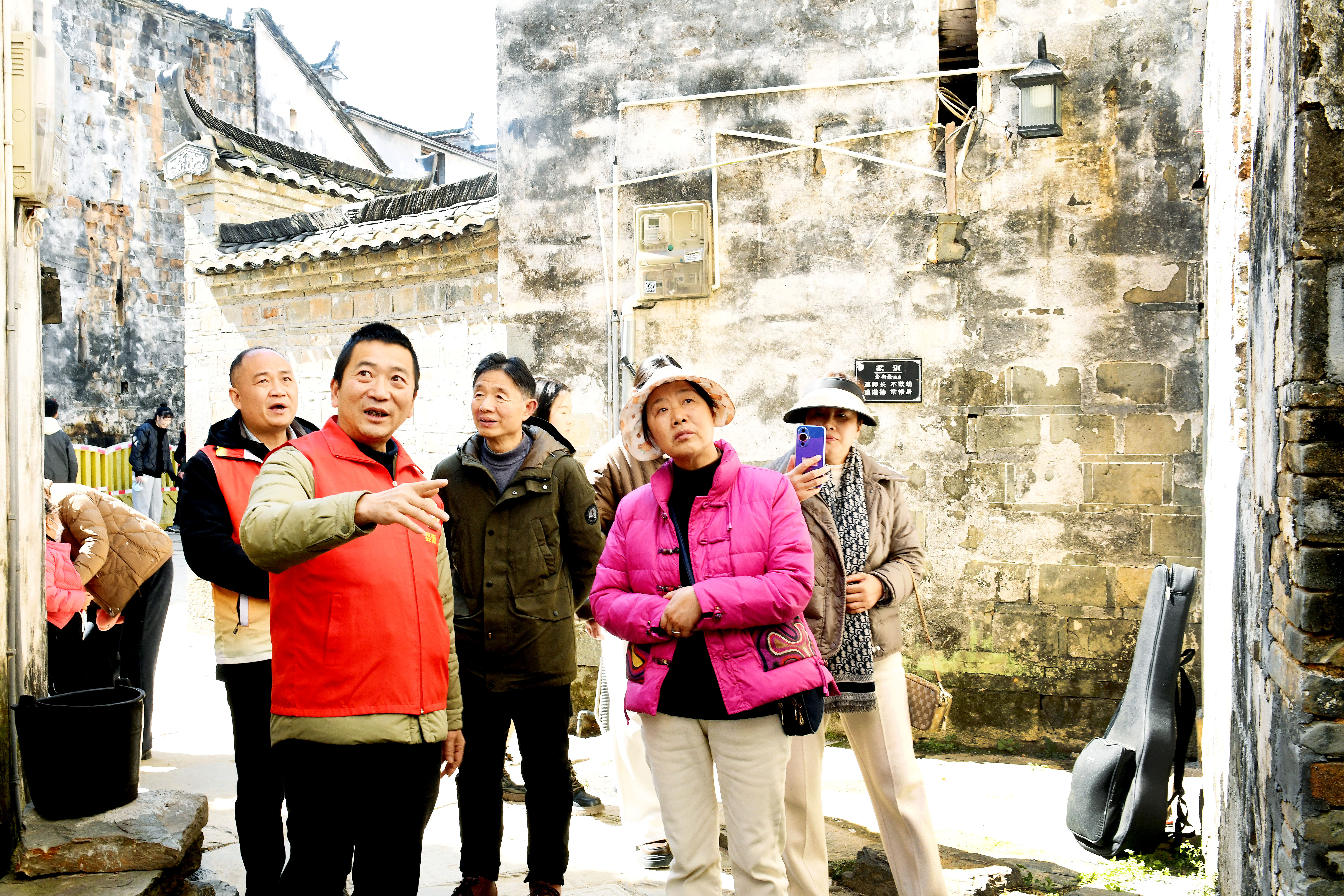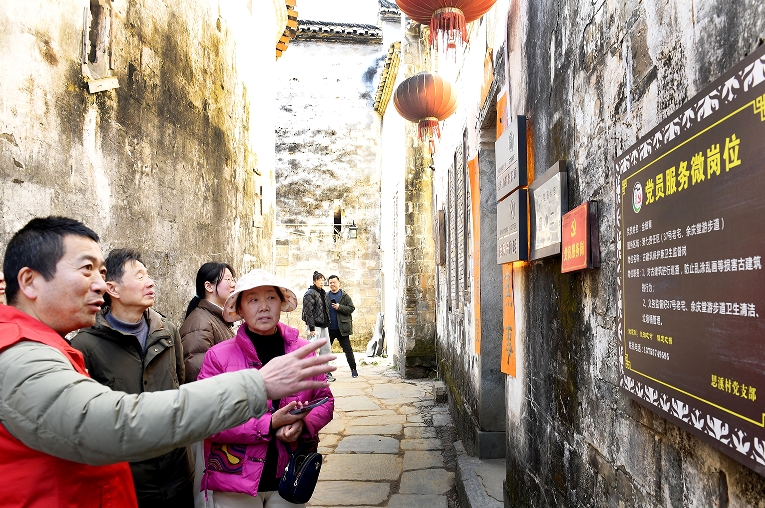 春天里的婺源縣思口鎮(zhèn)風(fēng)景如畫,慕名前來(lái)的客人絡(luò)繹不絕,村鎮(zhèn)兩級(jí)工作人員在搞好環(huán)境衛(wèi)生、糾紛監(jiān)督等服務(wù)的同時(shí),推出了黨員干部義務(wù)做道路向?qū)Ш途皡^(qū)導(dǎo)游的“兩導(dǎo)”服務(wù),有效提升了景區(qū)旅游品位。圖為,2月17日,該鎮(zhèn)黨員干部正在給旅客做義務(wù)導(dǎo)游,講解當(dāng)?shù)氐娘L(fēng)土人情。