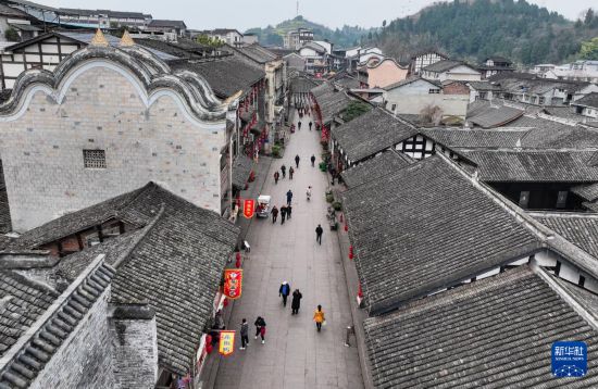 2月27日,游客在重慶潼南雙江古鎮(zhèn)游覽(無(wú)人機(jī)照片)。