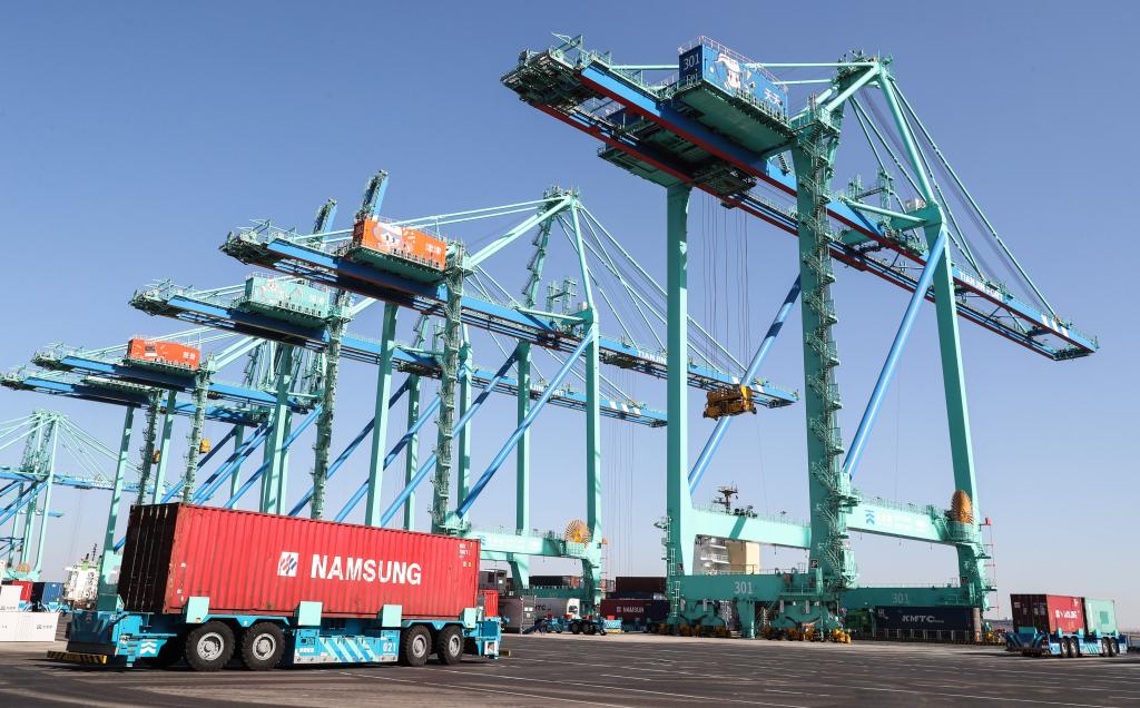 這是3月1日拍攝的天津港北疆港區(qū)C段智能化集裝箱碼頭。新華社記者單宇琦攝