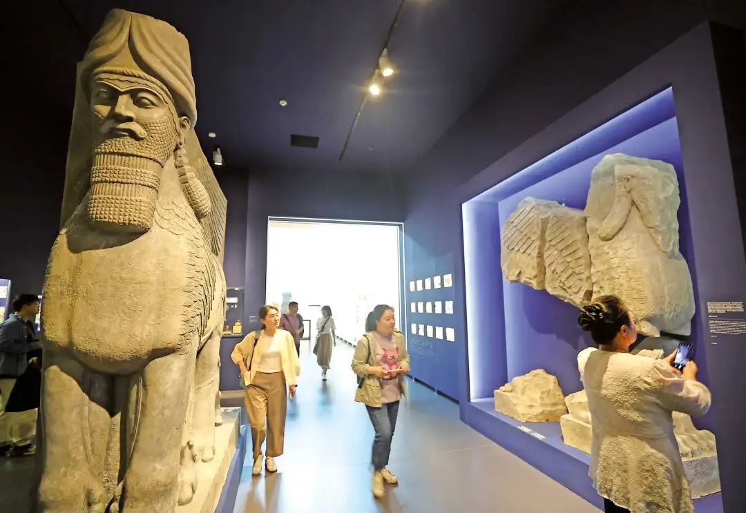 游客井然有序地在中國國家博物館參觀“守護(hù)與重光”展覽。