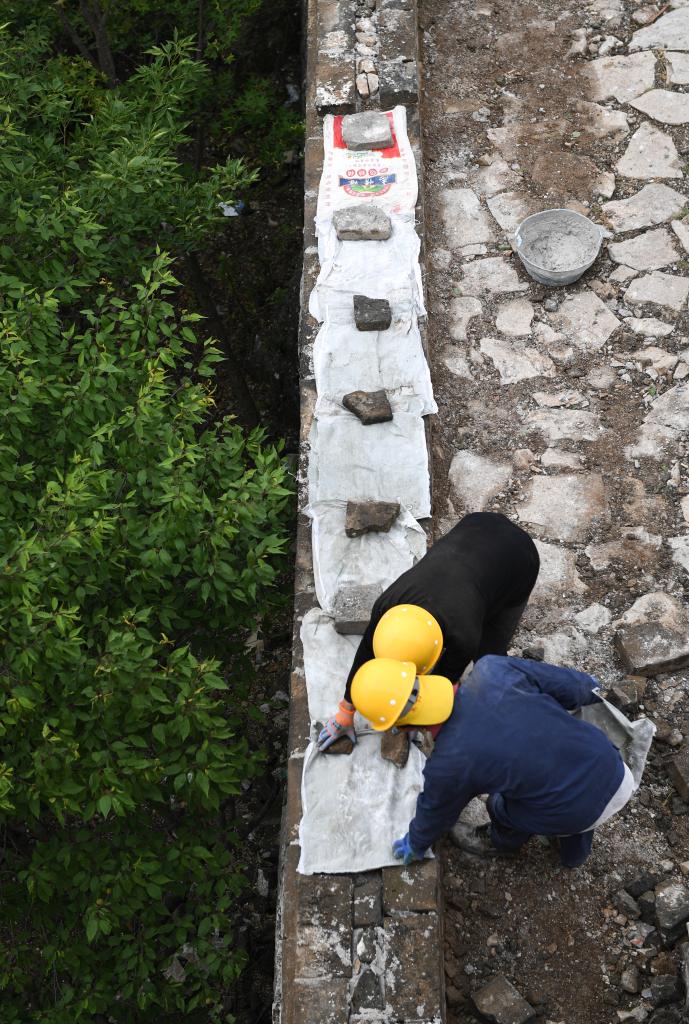 新華社北京7月8日電(記者羅鑫)夏日炎炎,在北京箭扣長(zhǎng)城五期保護(hù)修繕項(xiàng)目現(xiàn)場(chǎng),考古、修繕等工作人員正冒著酷暑在緊張地忙碌著。記者在現(xiàn)場(chǎng)看到,箭扣長(zhǎng)城120號(hào)敵臺(tái)北側(cè)坍塌嚴(yán)重,砂石墻體里夾雜著石雷等文物亟待發(fā)掘,墻體旁散落的磚石已被工作人員整齊地?cái)[放在一起,后續(xù)它們將成為長(zhǎng)城修繕的重要原材料。
