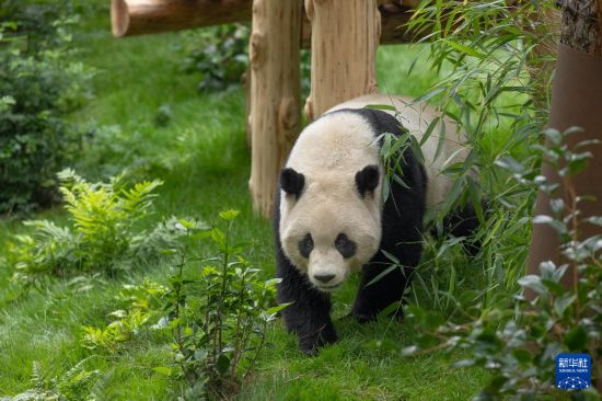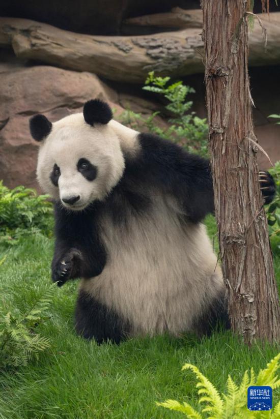 這是美國加利福尼亞州圣迭戈動(dòng)物園7月19日發(fā)布的大熊貓“云川”在動(dòng)物園新家的照片。