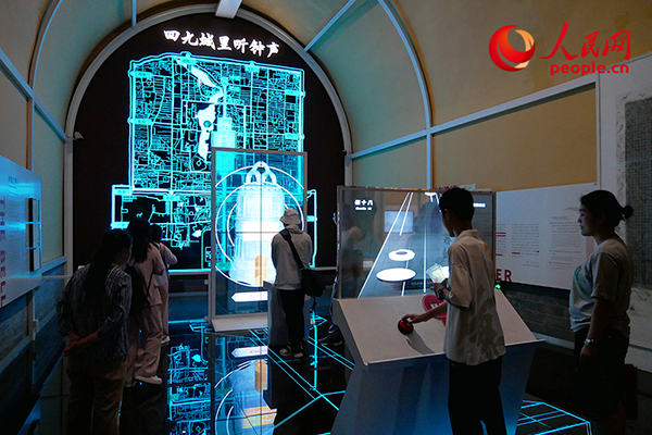 游客在鼓樓展館體驗交互裝置。人民網(wǎng)記者 韋衍行攝