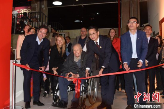 當(dāng)?shù)貢r(shí)間8月12日,巴西圣保羅州坎皮納斯市,“中國(guó)藝術(shù)五千年 塞奎拉·萊特收藏”啟幕。圖為收藏家塞奎拉·萊特(前左二)在開(kāi)幕式上剪彩。中新社記者 林春茵 攝