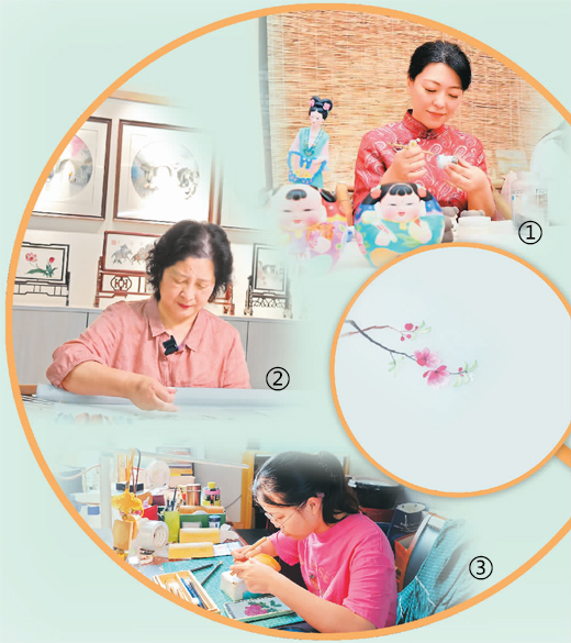 圖①:惠山泥人廠高級工藝美術(shù)師周璐正在創(chuàng)作泥人彩繪。