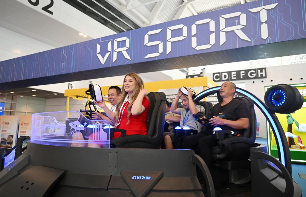 2024中國(guó)文化旅游產(chǎn)業(yè)博覽會(huì)上,與會(huì)者在體驗(yàn)一款VR設(shè)備。新華社記者 趙子碩 攝