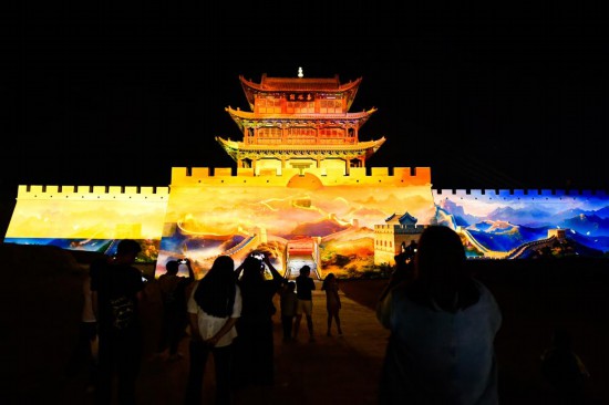 “夜游項目的燈光、音響和動畫效果都非常出色,身處曠野之中、星空之下,更能感受嘉峪關(guān)的雄偉。”來自寧夏銀川的游客黃莉說,她和家人沉浸于一步一景的故事中,仿佛瀏覽了一部長城史詩。
