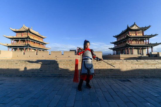 來自安徽合肥的游客俞茂林站在城墻上,用手機定格女兒俞胡元一身戎裝、手執(zhí)長劍的颯爽英姿?!爸蒙砉彭崻q存的嘉峪關(guān),仿佛夢回大漠邊關(guān),就想給孩子拍張酷酷的花木蘭古裝照。”他笑著說。