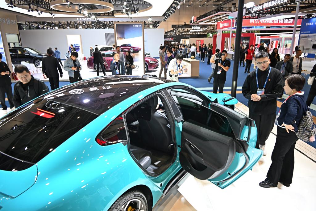 10月18日,參觀者在2024中國(guó)國(guó)際消費(fèi)電子博覽會(huì)的智慧出行展區(qū)參觀。