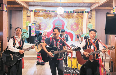 在云南省瀾滄拉祜族自治縣,拉祜族房東扎努的民宿在國慶節(jié)假期迎來滿房。今年4月,扎努改造自家老房子,把民族音樂與民宿相結(jié)合,開了一家音樂民宿——拉祜音宿?!袄镒迨悄芨枭莆璧拿褡?。我喜歡與人交流,喜歡鄉(xiāng)村風光和家鄉(xiāng)氣候,所以選擇回鄉(xiāng)開民宿。”作為房東,扎努常常帶游客一起唱歌跳舞,表演他創(chuàng)作的《我在瀾滄等你》《快樂拉祜》等歌曲,并向他們介紹拉祜族的民族歷史和文化。