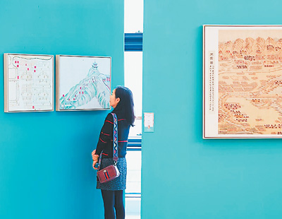 開館當天,“尋幽探勝——國家圖書館藏三山五園輿圖及園林主題文化藝術(shù)巡展(湖州站)”開幕,展出國家圖書館藏輿圖復制品、樣式雷圖檔復制品以及多位當代藝術(shù)家的山水畫佳作等,在歷史文脈的梳理和新藝術(shù)語境的構(gòu)建中,向觀眾呈現(xiàn)立體的“三山五園”文化景觀。