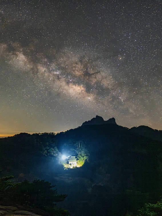 三清山是“中國最美星空基地”之一。這里海拔1200米以上的觀星點(diǎn),光污染等級僅為1級(最暗)。當(dāng)夜幕降臨,北斗七星仿佛觸手可及,銀河如碎鉆鋪滿天際。