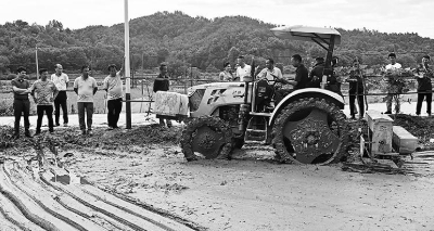 6月5日,萬年縣青云鎮(zhèn)史橋村田畈上一臺(tái)新型農(nóng)機(jī)“種肥同播機(jī)”正在示范作業(yè)。近年來,萬年縣農(nóng)機(jī)部門不斷引進(jìn)推廣新型農(nóng)業(yè)機(jī)械裝備,做好技術(shù)服務(wù),極大地提高了農(nóng)業(yè)機(jī)械化水平和農(nóng)業(yè)生產(chǎn)效率,促進(jìn)了農(nóng)業(yè)高效發(fā)展。趙德穩(wěn) 攝