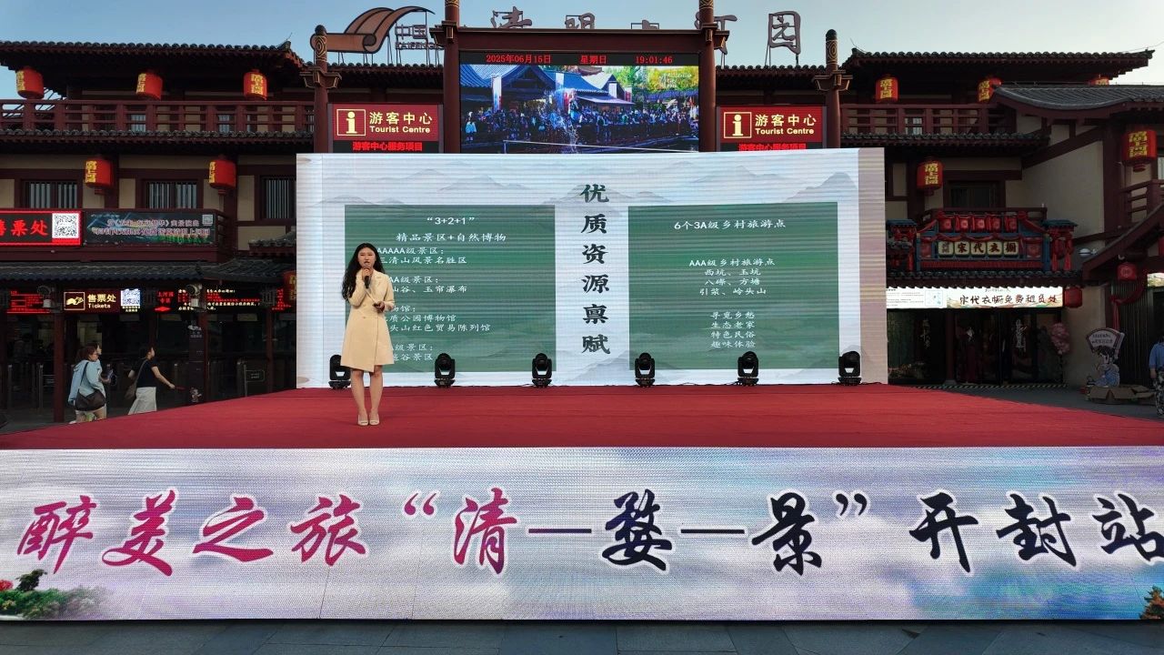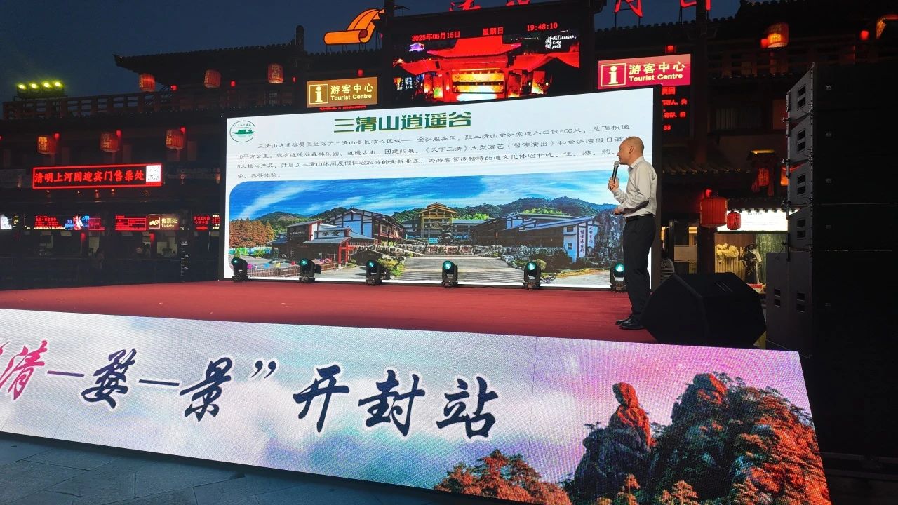 6月15日晚,“清-婺-景”“婺-望-三清”主題旅游線路推介會走進(jìn)河南省開封市清明上河園景區(qū)。本次推介會由三清山景區(qū),婺源鄉(xiāng)村文旅,婺女洲景區(qū),葛仙村景區(qū),逍遙谷景區(qū)等聯(lián)合推介。三清山文旅推介會首次進(jìn)入旅游園區(qū),為現(xiàn)場數(shù)千游客送上一場來自上饒旅游的精神盛宴。