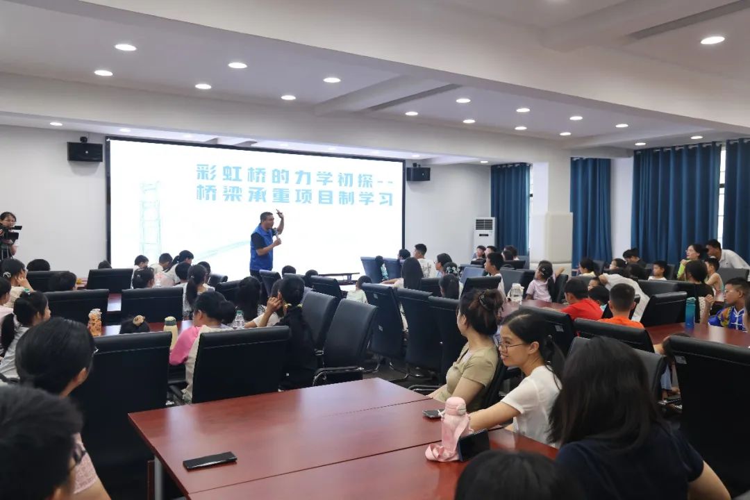 玉山縣青少年科技教育協(xié)會副秘書長陳俊以《彩虹橋的力學(xué)初探——橋梁承重項(xiàng)目制學(xué)習(xí)》為主題,引領(lǐng)青少年探索力學(xué)奧秘,深入淺出地講解了力學(xué)在生活中的應(yīng)用場景及在橋梁承重中的作用,極大地激發(fā)了青少年們探索未知世界的熱情。學(xué)生葉宸胤興奮地說:“太有意思了,以前覺得科學(xué)就是背定義、做題目,有點(diǎn)無聊,今天通過搭橋、做實(shí)驗(yàn),看著自己的想法變成‘能承重的橋’,特別有成就感?!?/p>